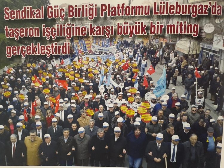 Sendikamız Belediye-İş’in de aralarında bulunduğu Türk-İş’e bağlı sendikalar tarafından oluşturulan Sendikal Güç Birliği Platformu’nun 23 Mart 2013 Cumartesi günü Tekirdağ’ın Lüleburgaz İlçesinden gerçekleştirdiği “Kuralsız Güvencesiz Çalışmaya Hayır. Taşeron İşçiliğe Son” mitingi büyük bir katılım ve coşkuyla yapıldı.