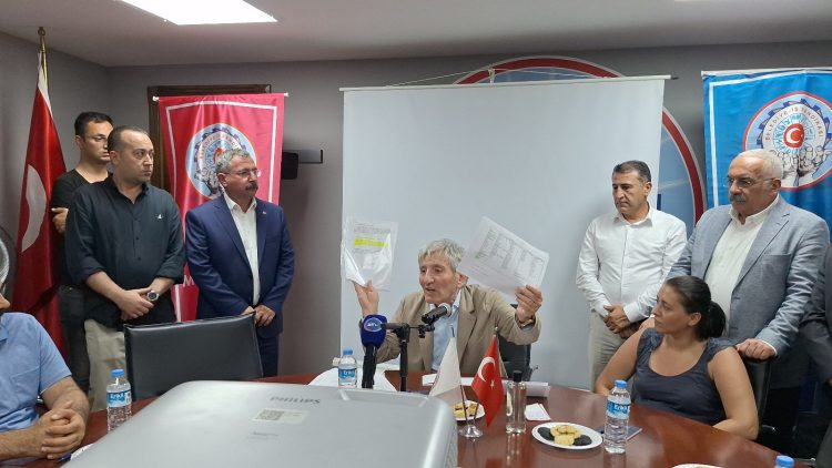 “Belediye-İş üyesi işçiler en az 80 bin lira ücret alıyor deniliyor. Bugün de tekrarladık. Öyle değil. Maaşlar 55-65 bin lira arası. Bordrolar belediye tarafından gönderilen bordrolar. En düşük maaşlar burada. 80 bin lira nerede kardeşim? Yasal kesinti konulduğunda bile 80 bin lira olmuyor. Biz zaten her yerde çalışan üzerindeki vergi adaletsizliği için savaşıyoruz. Bunu zaten eleştiriyoruz. Eylül ayındaki artışta 130 bin lirayı bulacağını söylüyorlar. Bizim aylık artışımız 6 aylık çakma enflasyon. Nasıl hesapladınız bunu da 130 bine çıktı. Ben 15’in üzerine cebimden koyacağım arkadaşlara vereceğim. Eylül ayındaki artışa 5 de ben ekleyeceğim. 130’dan düşeceğim. Protokolü de ben yapacağım. Ankara’da da söyledim. Konuşmuşlar ancak kabul etmemiş.”