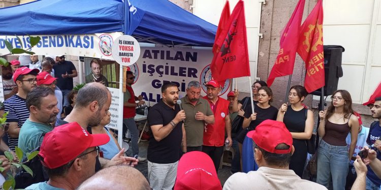 Haksız işten çıkarılan emekçilerin işe iadesi için sendikamıza anlaşma teklifinde bulunan Sayın Cemil Tugay, teklife ilişkin protokol hazırlığı aşamasında yaptığı...