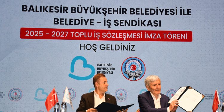 Balıkesir Büyükşehir Belediyesi ve Balıkesir Büyükşehir Belediyesi Su ve Kanalizasyon İdaresi’nde (BASKİ) çalışan 7 bine yakın üyemizi kapsayan toplu sözleşme törenine üyelerimiz büyük katılım gösterdiler. Toplu sözleşme, Genel Başkanımız Nihat Yurdakul ile Balıkesir Büyükşehir Belediye Başkanı Sayın Ahmet Akın tarafından imzalandı.