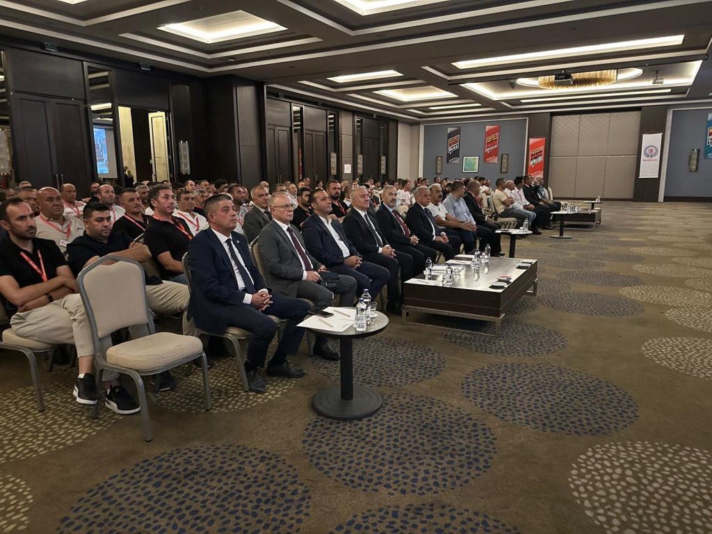Genel Kurul’un Divan Başkanlığını sendikamız Örgütlenme Genel Sekreteri İsmail Duman, Divan Başkan Yardımcılığını TİS Genel Sekreteri Güney Demirdaş yaparken, Divan Katip Üyeliklerini ise Afyonkarahisar Şube Başkanı Mehmet Selman, Burdur Şube Başkanı Mehmet Ferit Çelikbaş ve Isparta Şube Başkanı Camal Kurt üstlendiler.