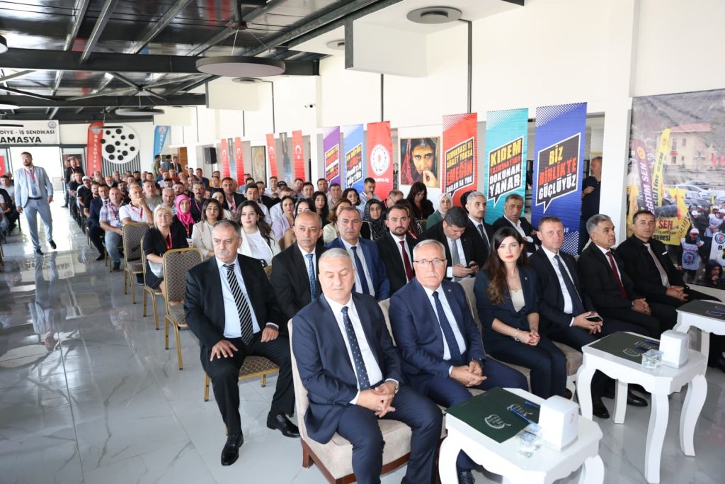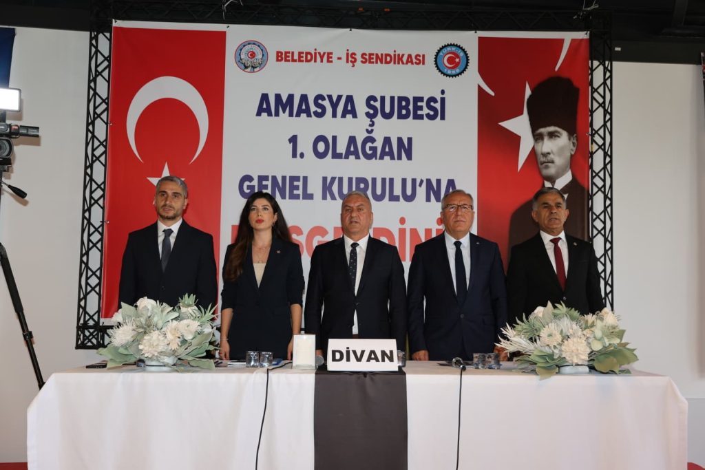 Amasya Şube delege ve üyelerinin katılımıyla The Apple Palace Otel Toplantı Salonu’nda gerçekleştirilen Genel Kurulun Divan Başkanlığını Sendikamız Örgütlenme Genel Sekreteri İsmail Duman yaparken, Divan Başkan Yardımcılıklarını Sendikamız Genel Denetleme Kurulu Raportörü Gamze Ceylan ve Çorum Şube Başkanı Mehmet Şen, divan katip üyeliklerini ise Tokat Şube Başkanı Naci Güneş ile Samsun Şube Başkanı Taha Yasin Mutlu üstlendi.