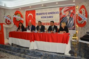Aydın Şube’ye bağlı delegelerimizin ve üyelerimizin katılımıyla gerçekleştirilen Genel Kurulun Divan Başkanlığını Sendikamız Toplu İş Sözleşmeleri Genel Sekreteri Güney Demirdaş yaparken, Divan Başkan Yardımcılıklarını Sendikamız Manisa Şube Başkanı Devrim Dinçer ve Muğla Şube Başkanı Ender Akbay, Divan Katip Üyeliklerini ise delegelerimiz Şafak Sayar ve Arzu Alçin üstlendiler.